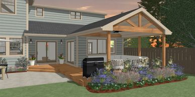 A covered deck addition designed for connection and comfort. With its open gable roofline, cozy seating, and seamless flow to the backyard, this space is built for evenings around the table and mornings with coffee in hand. Natural wood beams and thoughtful details add warmth, making it a true extension of the home.